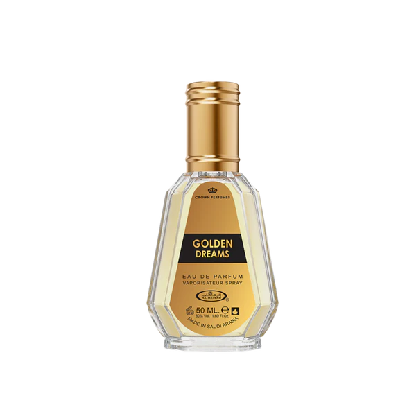 Golden Dreams by Al-Rehab exudes elegance with its luxurious blend of cardamom and saffron, opening to a heart of honey and jasmine. This perfume’s warm base of patchouli and leather creates an unforgettable, long-lasting impression.